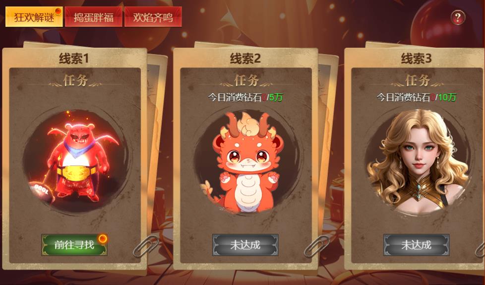 活动时间:10月18日0点-10月20日24点活动内容:活动期间内,参与狂欢解谜、捣蛋胖福、欢焰齐鸣,可获得红包、钻石、庆典烟花等诸多福利奖励。