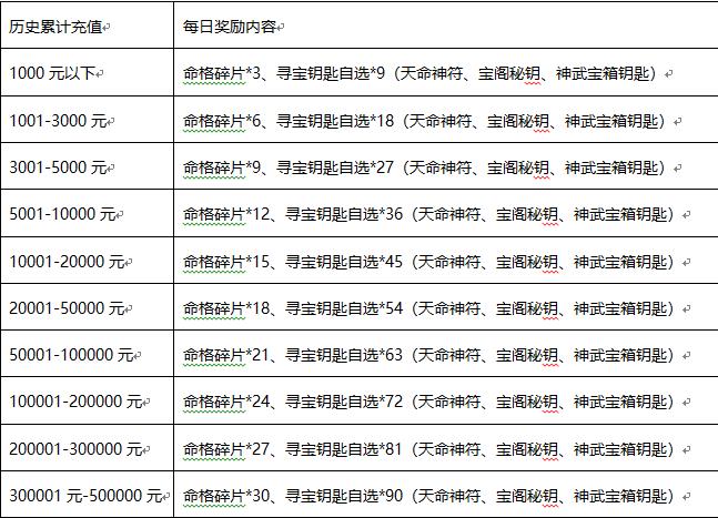 (根据不同开服天数,奖励略有差异,具体以游戏实际为准)