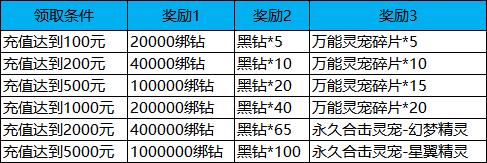 活动内容:活动期间内,限时累计充值达到指定档位,可领取对应档位奖励。